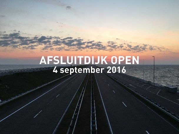 Voor het eerst in de geschiedenis gaat de Afsluitdijk op 4 september 2016 volledig open voor duizenden hardlopers en wordt de dijk afgesloten voor al het verkeer. Tijdens de Afsluitdijk Open zien we een lang lint van hardlopers dat bij het opkomen van de zon over een internationaal icoon loopt. Een hele, halve of kwart Afsluitdijk kan eenmalig worden toegevoegd aan de bucketlist van hardlopend Nederland. Daarnaast kunnen de lopers ook een steentje bijdragen aan de goede doelen die verbonden zijn aan de Afsluitdijk Open: De Trombose Stichting en Spieren voor Spieren.