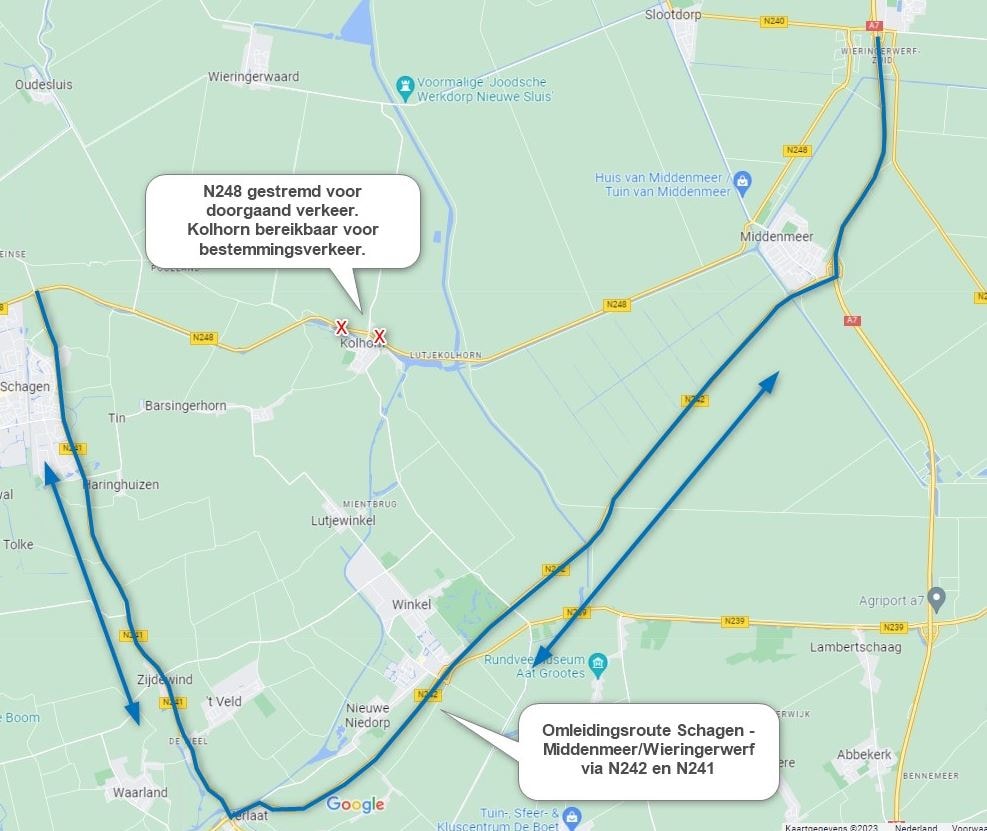 De werkzaamheden worden uitgevoerd van maandag 9 oktober tot en met vrijdag 20 oktober 2023. In deze periode is de N248 afgesloten voor doorgaand verkeer. Kolhorn blijft bereikbaar. Voor het (brom)fietsverkeer is er geen hinder.